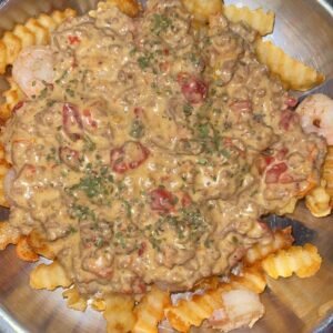 Juicy Cajun-spiced shrimp and savory sausage on seasoned potatoes, finished with a spicy CAJUN garlic aioli.